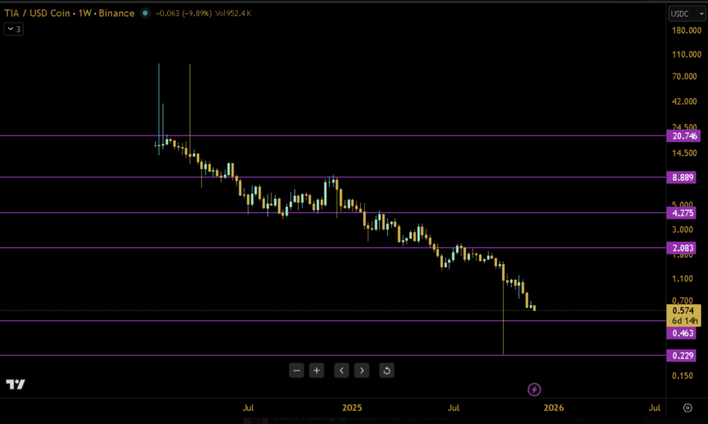 If TIA can close the day above that $0.60 support zone, it could lead to a short-term rally towards the resistance levels of $0.68 and $0.72. However, failure to maintain support may trigger renewed bearish momentum, with a drop toward $0.50 and possibly lower, a real possibility.