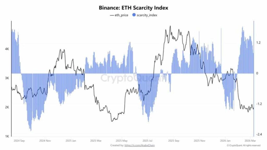 Ethereum is trading sideways, frustrating retail investors who have watched the second-largest cryptocurrency stagnate. But beneath the choppy price action, a critical on-chain signal has just flashed green. The Ethereum Scarcity Index on Binance has climbed to 0.67, a positive reading that indicates more ETH is leaving the exchange than entering it.